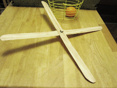 ...but alas, after 30 minutes or more of fiddling, I had two pieces of wood with the right dimensions. If I hadn't been so hasty, I could have just gotten some scraps from Lowe's or Home Depot (yeah, they give that stuff away), although you should make sure you're getting pine, or at least something not too heavy. By the way, apparently balsa-wood won't work well for boomerangs--it's actually too light!